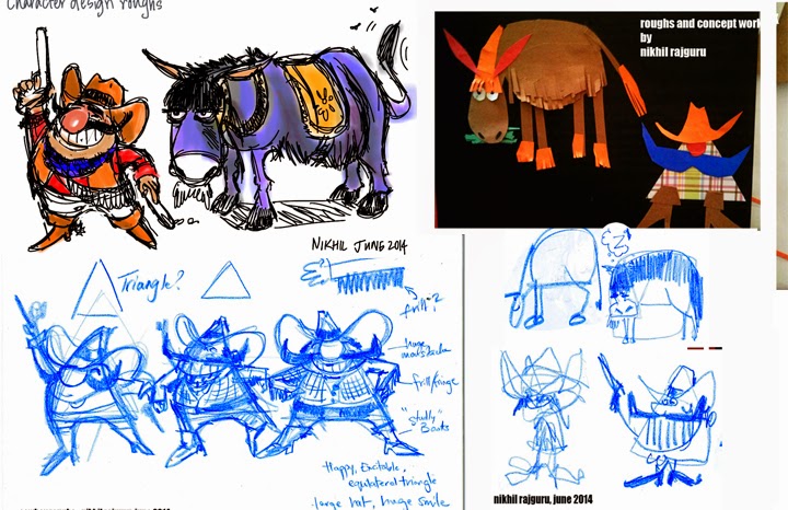 Here you see paper cut outs, and left hand scribbles leading to the top-left design - going back to basics to get a fresh design.